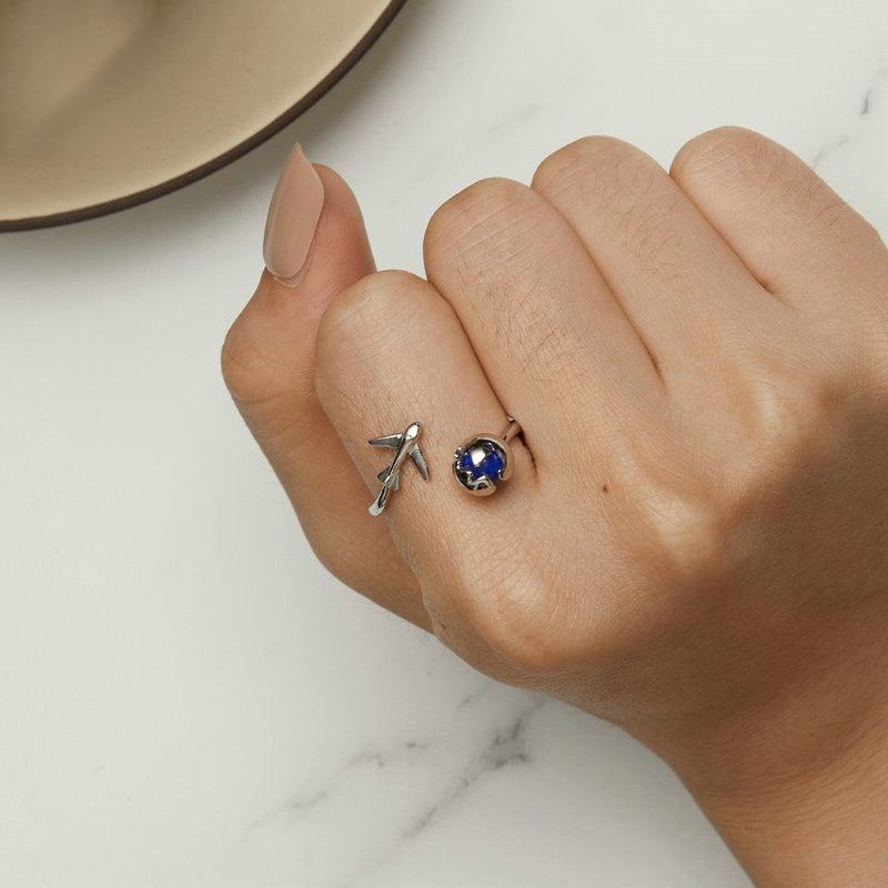 Real S925 Original 925 Sterling Silver Lapis Lazuli Open Ring, Men's and Women's Romantic Global Journey Airplane Ring