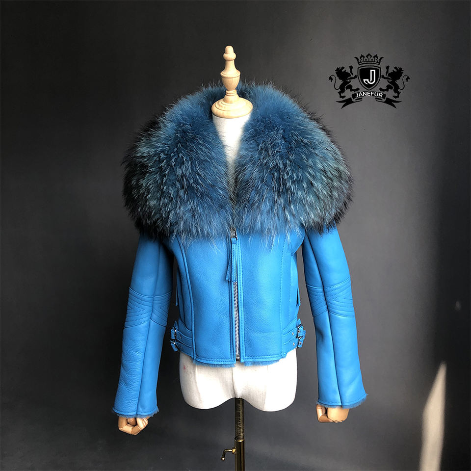 Giacca in Vera Pelle di Pecora per Donna, Cappotto in Vera Pelliccia di Procione, Giacca in Pelle per l'Inverno