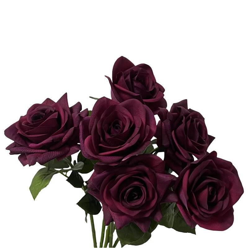 Vero tocco idratante grande arricciato viola scuro rosa a stelo singolo rosa artificiale fiore per decorazioni di nozze e stile per la casa