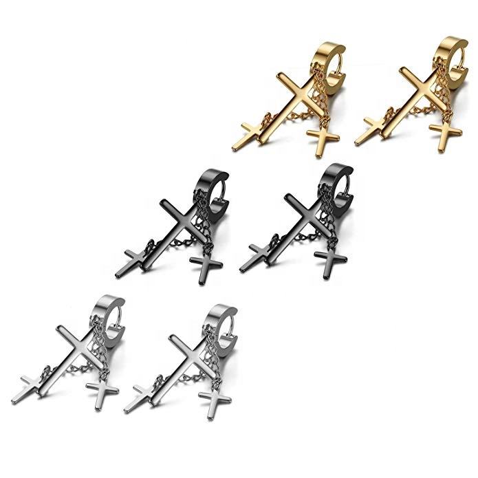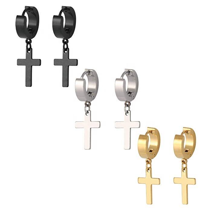 Vero U gioielli 3 paia ciondola Huggie incernierato cerchio 18K placcato oro orecchino per ragazzi croce orecchino in acciaio inossidabile