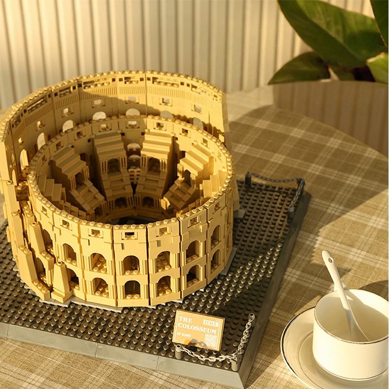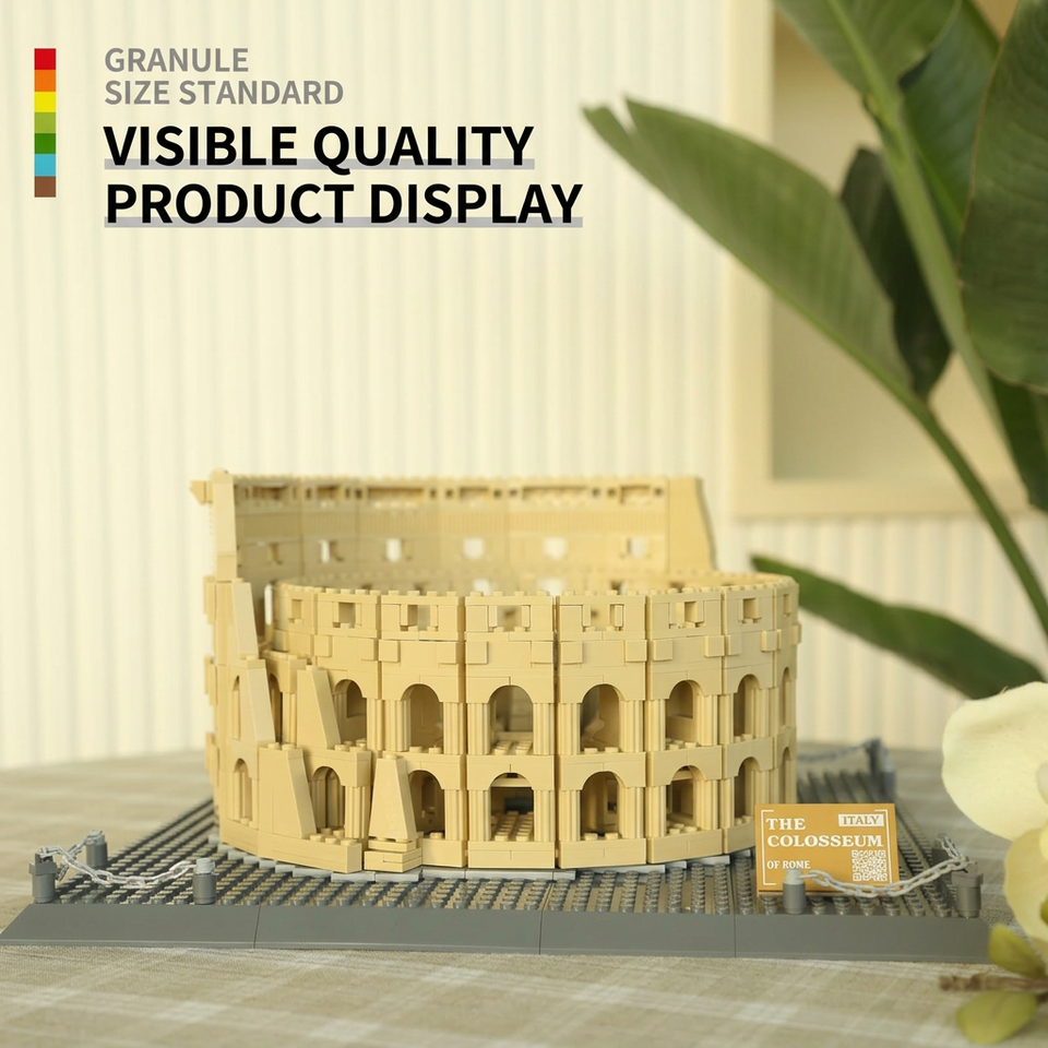 Set di Blocchi di Costruzione in Plastica del Colosseo Fai-da-Te Personalizzato, Edificio Romano Antico per Regalo Creativo ed Esposizione da Collezione