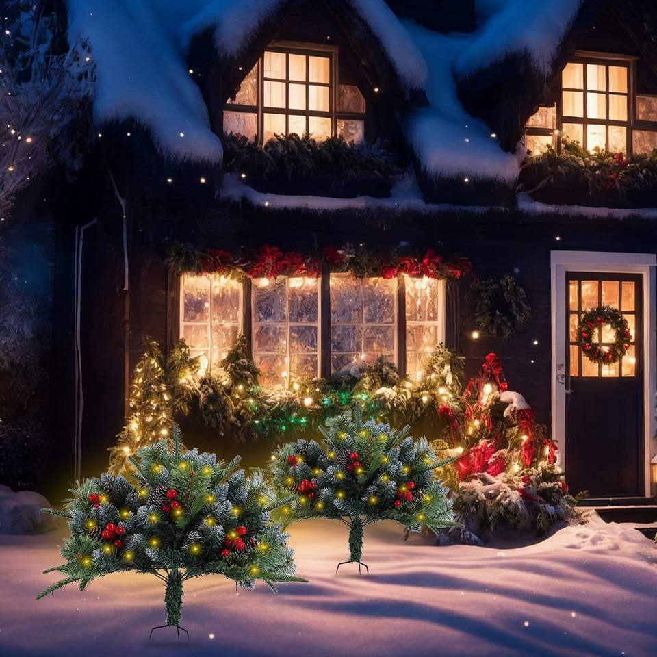 Albero di Natale Artificiale Realistico con 8 Modalità di Illuminazione LED, Timer Automatico, Impermeabile IP44, Funzionamento a Batteria per Uso Interno ed Esterno