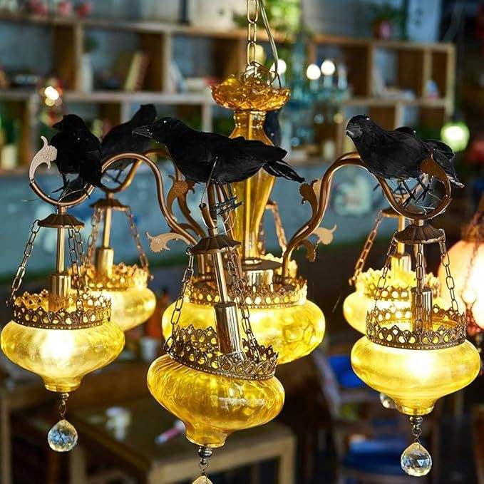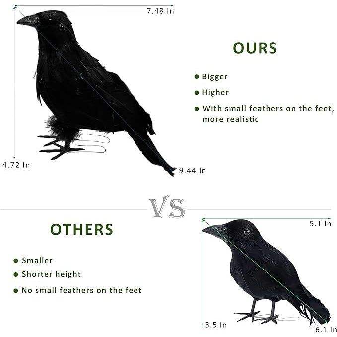 Corvi Realistici con Piume Nere per Decorazioni di Halloween, Ornamenti di Uccelli per Halloween