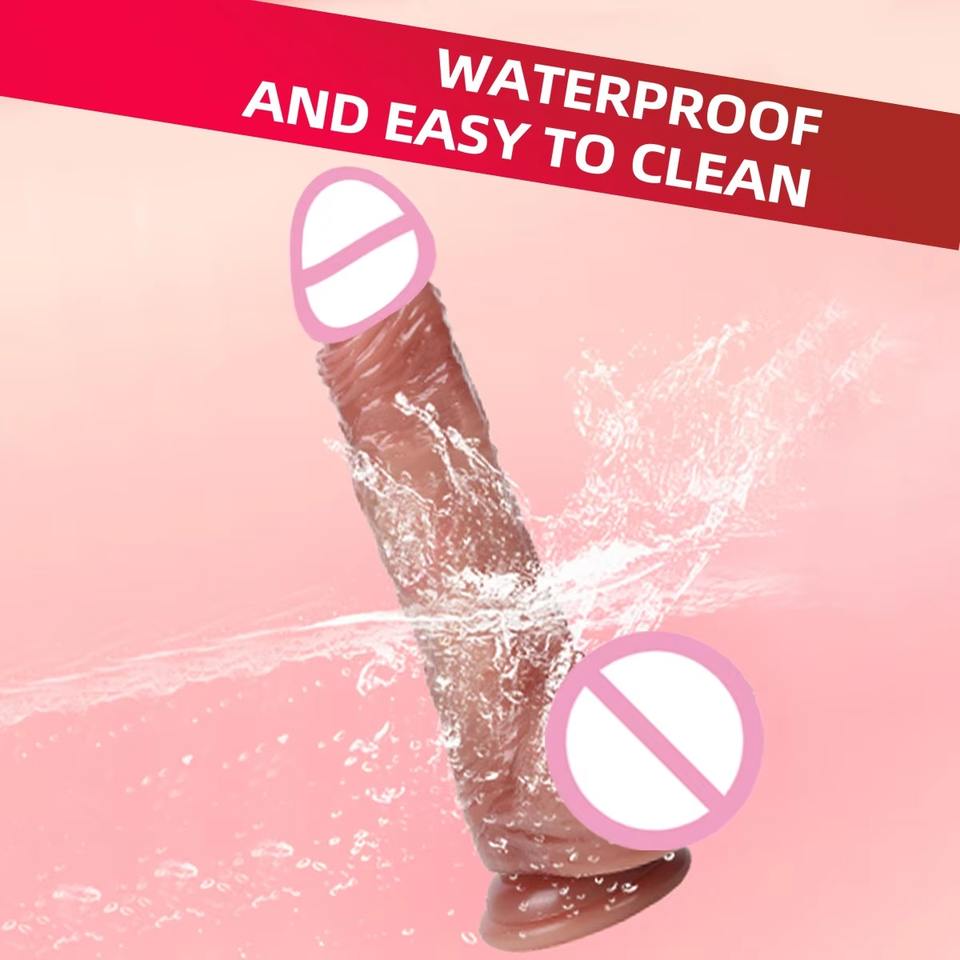 Dildo realistico per la pelle delle donne che scorrono i testicoli del prepuzio Dildo stimolazione vaginale anale Strapon grandi pene giocattoli del sesso per la donna