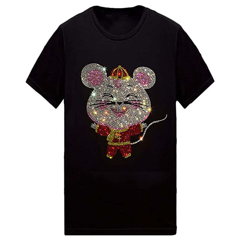 T-shirt da uomo in cotone 100% tinta unita con strass, vestibilità ampia, personalizzabile con logo, a prezzo conveniente