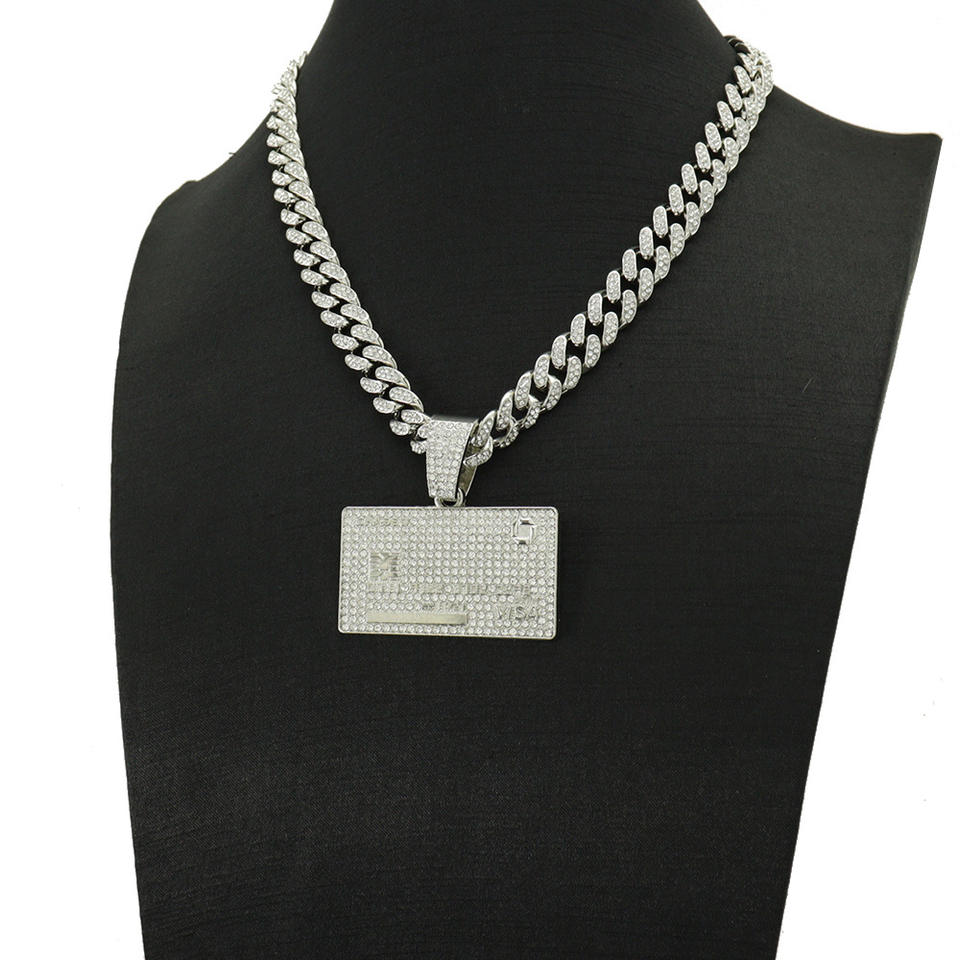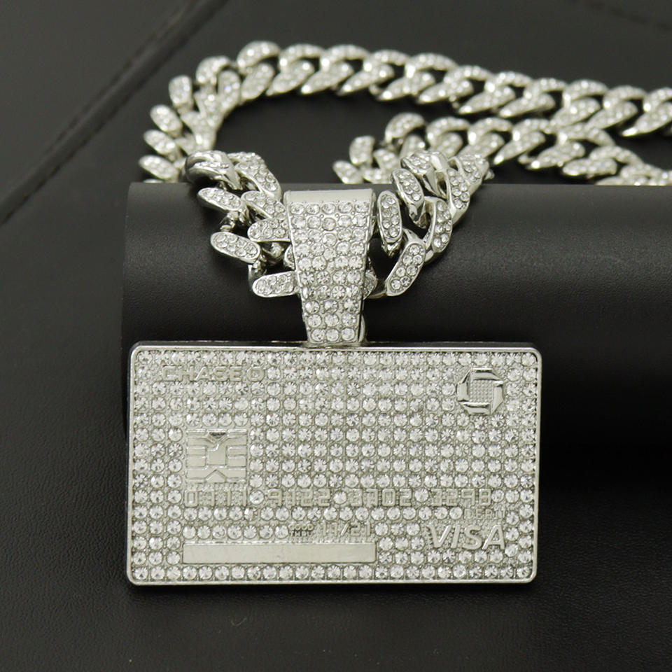 Prezzo ragionevole donna personalizzato grande oro pesante carta di credito ciondolo Moissanite maglia cubana collana Hiphop gioielli