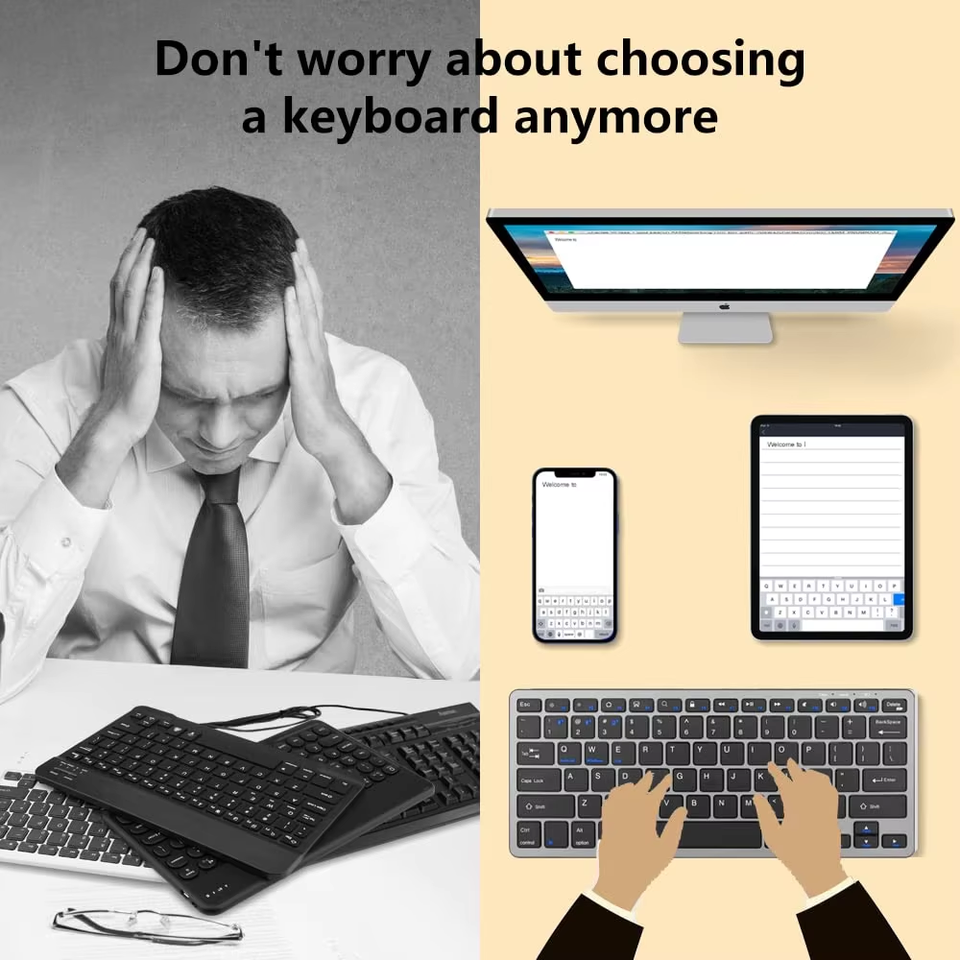 Set Tastiera e Mouse Wireless Ricaricabile 2.4G, Tastiera e Mouse Bluetooth Ergonomici Sottili per PC e Notebook