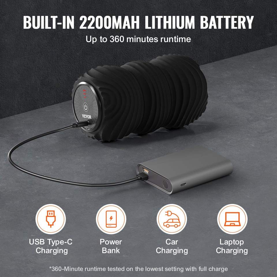 Rullo Massaggiante Elettrico Ricaricabile a Doppia Testa per Lacrosse, 4 Intensità, Vibrante, a Forma di Arachide, per Massaggio Profondo dei Tessuti