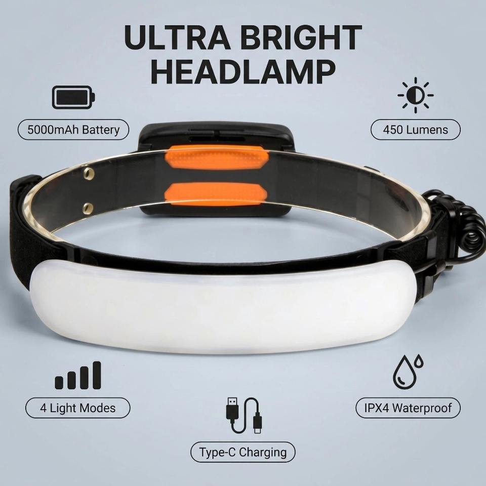 Lampada Frontale Ricaricabile 7500mAh 1500 Lumen Super Luminosa LED Lampada da Testa 230 ° Casco di Sicurezza con 3 Modalità IPX6 per Adulti