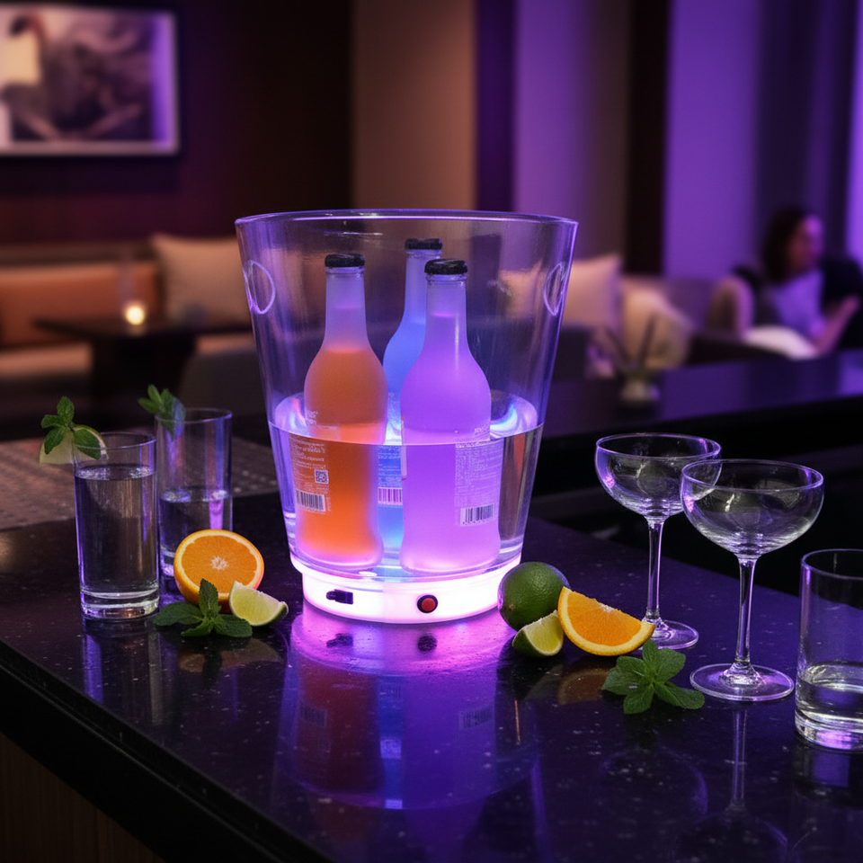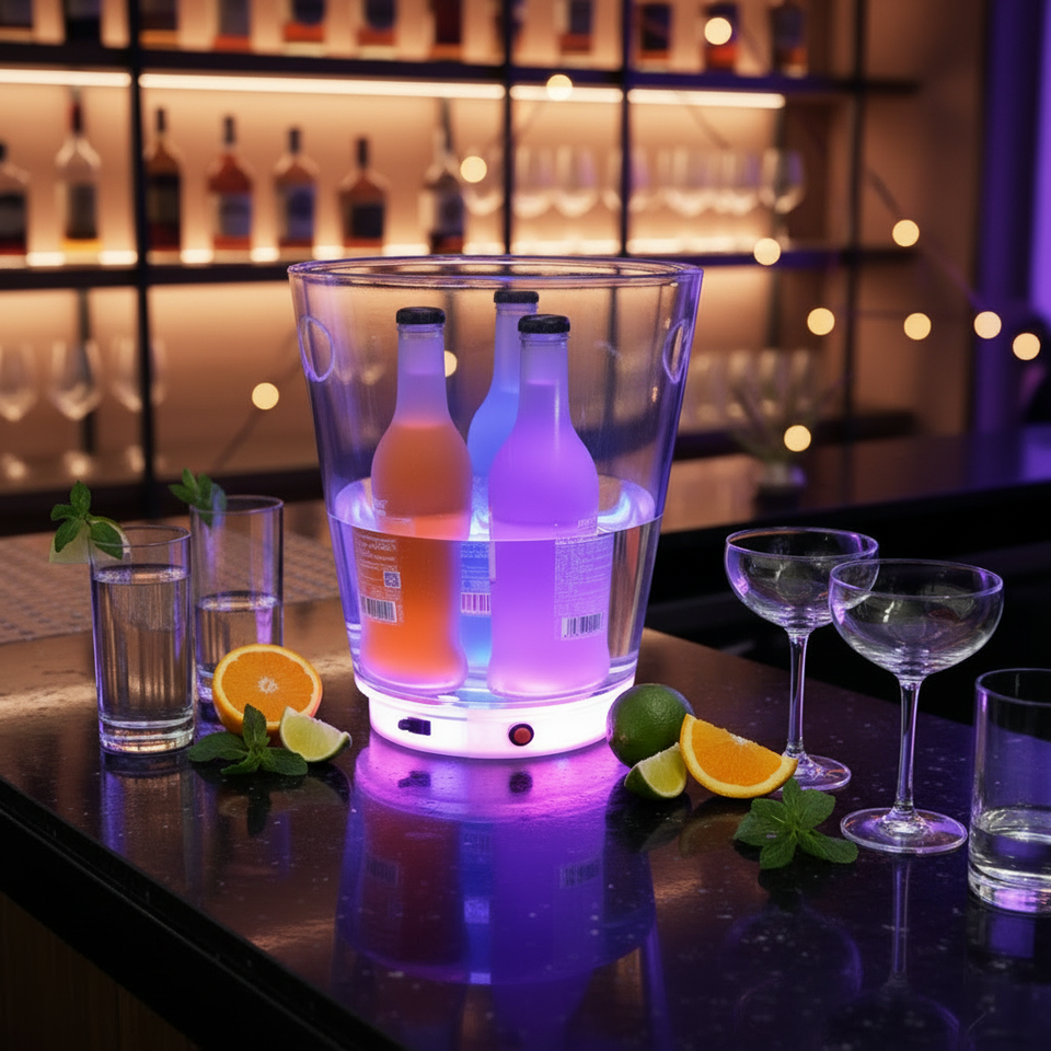 Espositore per secchiello del ghiaccio acrilico a LED ricaricabile per uso domestico o commerciale