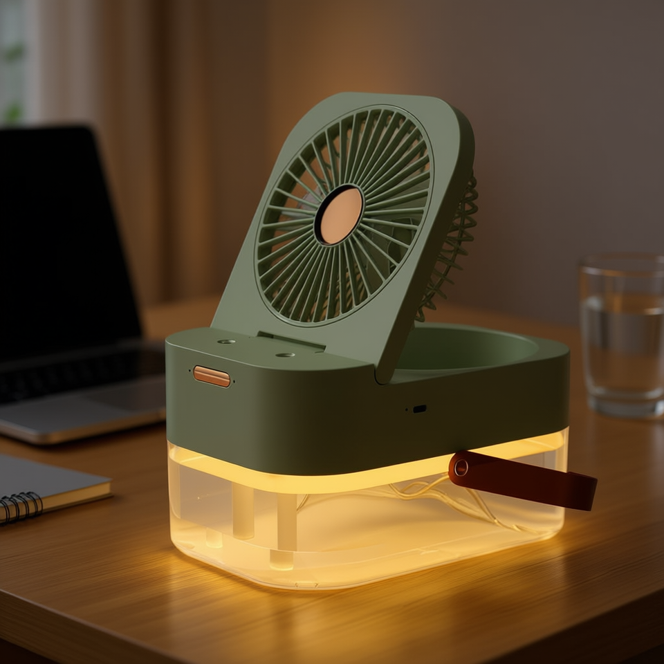 Ventilatore da scrivania a LED ricaricabile con nebulizzatore, serbatoio d'acqua da 2,5 litri, doppia uscita portatile per casa, ufficio, camera da letto