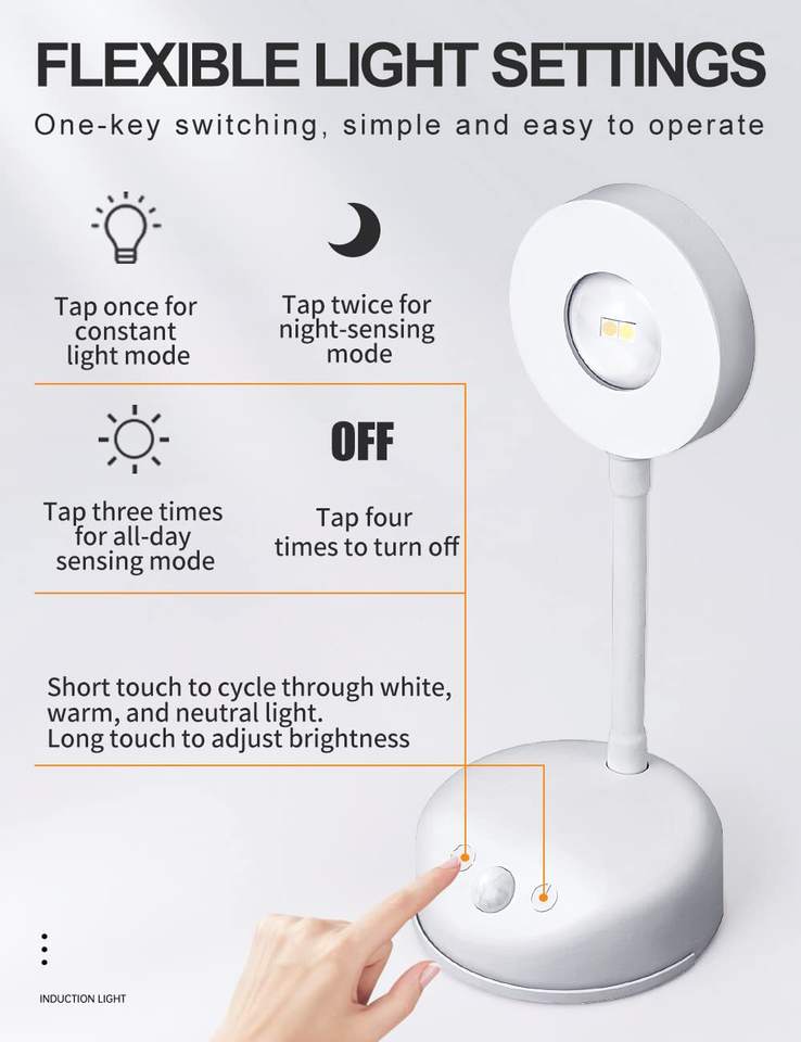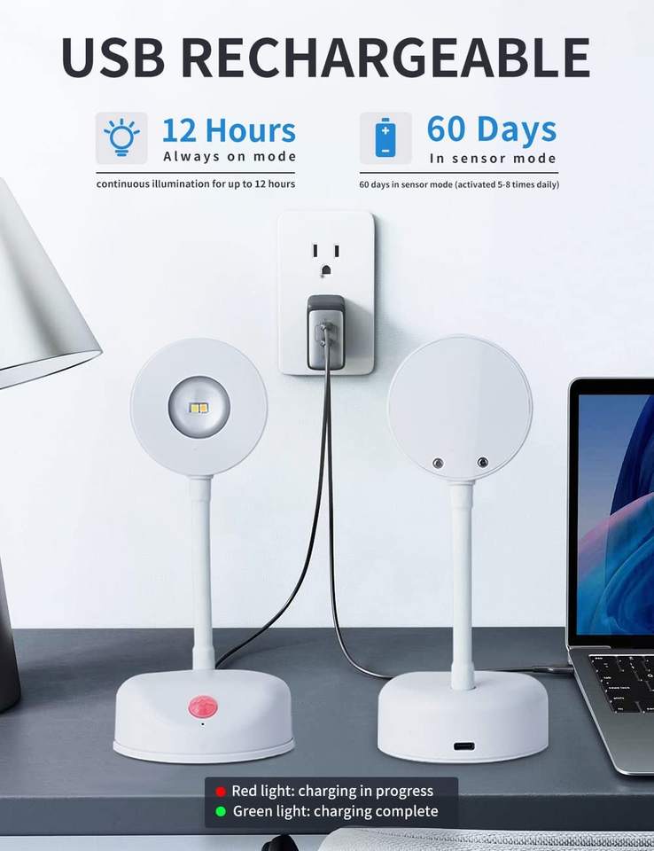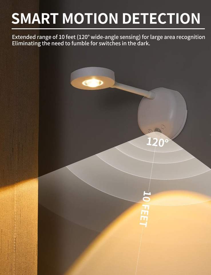 Faretto LED Ricaricabile con Sensore di Movimento, Lampada da Parete a Occhio di Gatto, Illuminazione per Quadri, Faretto Wireless LED