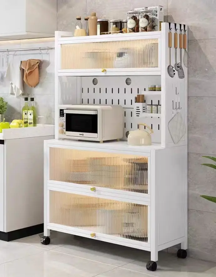 Recommended Carbon Steel Belt Lock Pulley Kitchen Storage Cabinet Multi Layer Storage Kitchenware Storage Rack