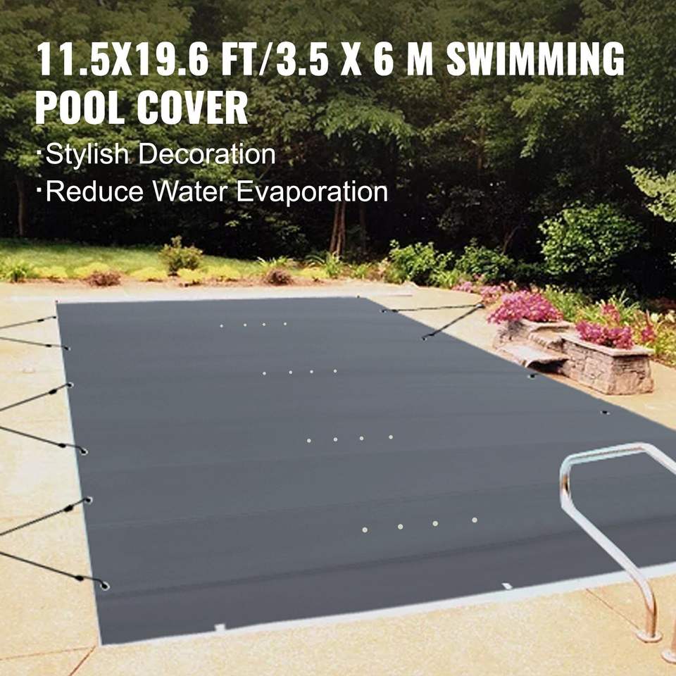 Copertura di Sicurezza Rettangolare 10.5x18.6ft per Piscine Interrate con Fori di Drenaggio, Copertura a Rete per Piscina e Avvolgitore