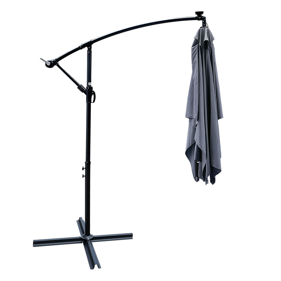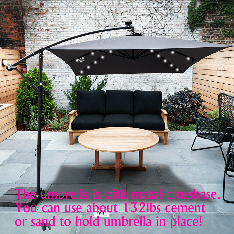 Ombrellone Rettangolare 2x3M da Esterno con Luci LED Solari, Impermeabile, 6 Stecche, con Manovella e Base a Croce, Parasole da Mercato