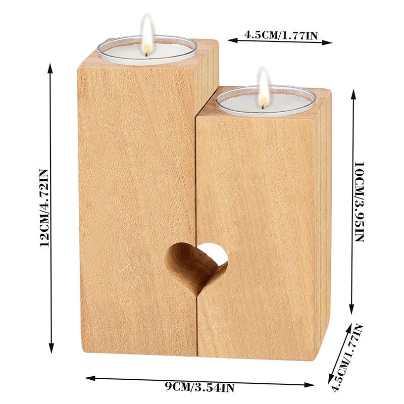 Portacandele in legno a forma di cuore rettangolare portacandele tealight portacandele candeliere decorativo