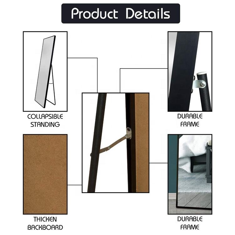 Forma di rettangolo pieno di lunghezza del pavimento a specchio specchio in piedi specchio per camera da letto soggiorno