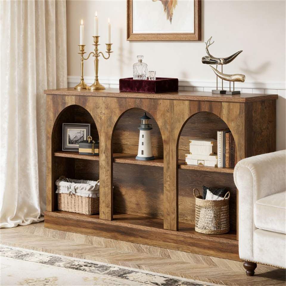 Consolle Rettangolare Stile Rustico con Spazio Contenitore, Tavolo da Ingresso/Soggiorno
