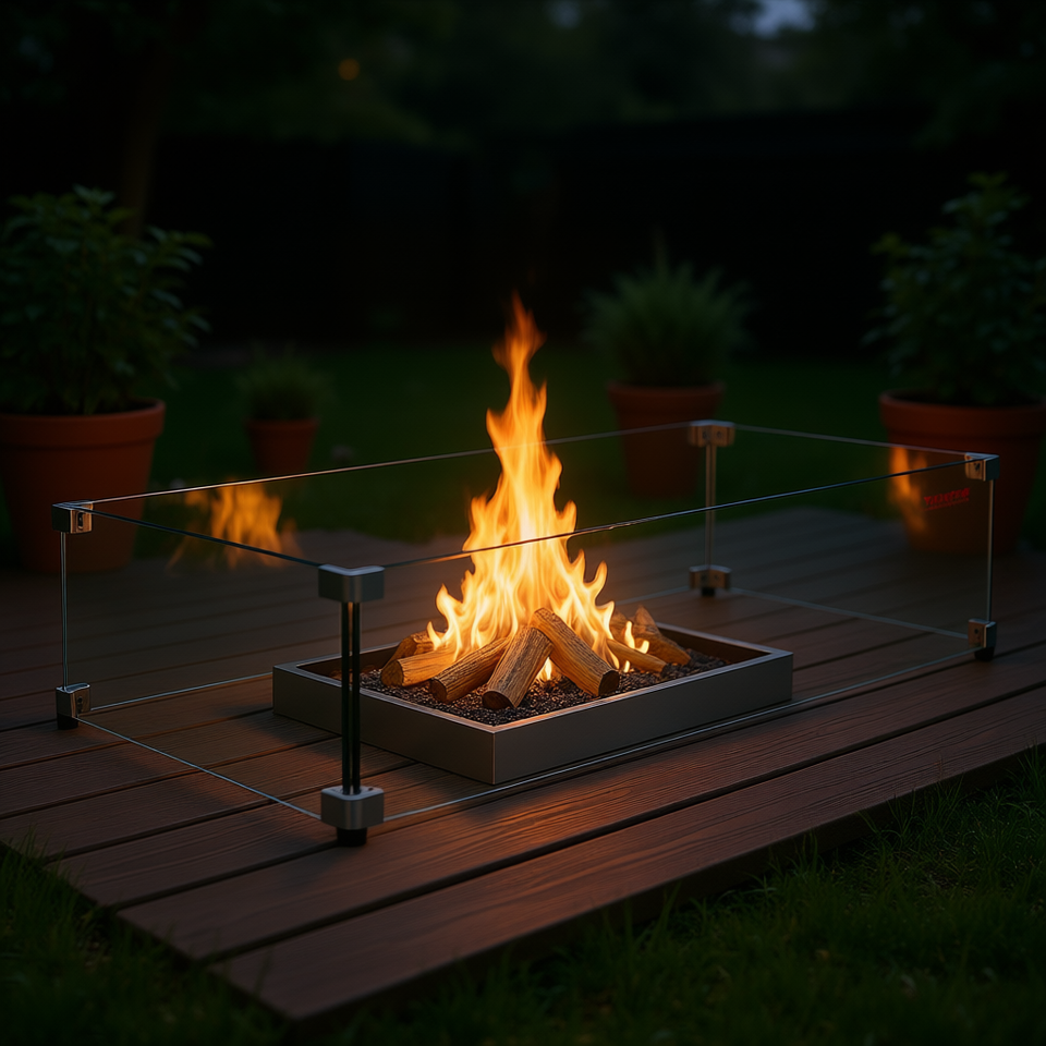 Tavolo Rettangolare con Braciere 30 X 14 X 7.5 Pollici, Protezione Antivento in Vetro Temperato, Riscaldatore a Bioetanolo per Esterni