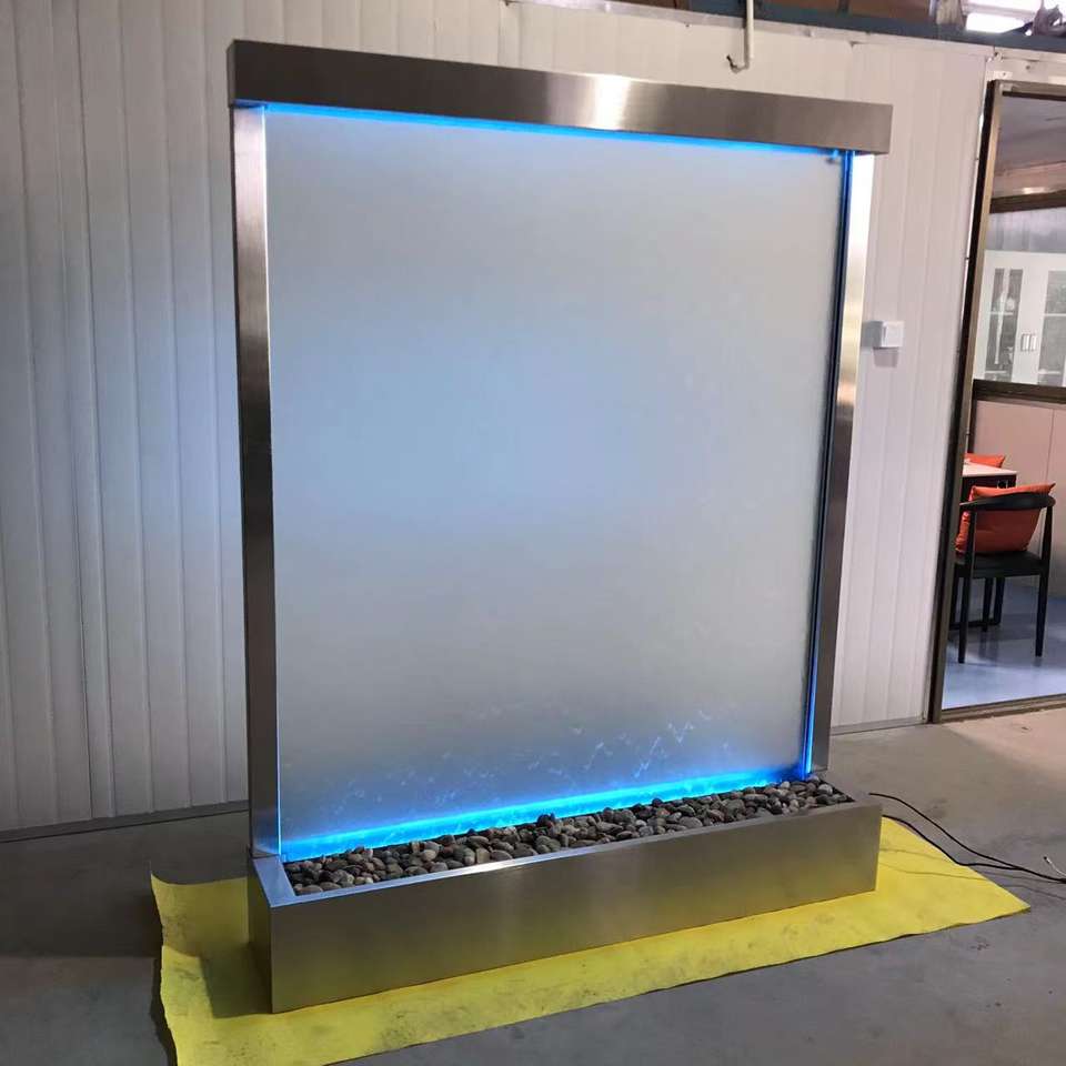 Fontana Rettangolare Scultura in Metallo con Cascata d'Acqua, Fontana Moderna con Finitura a Specchio, Design Artistico
