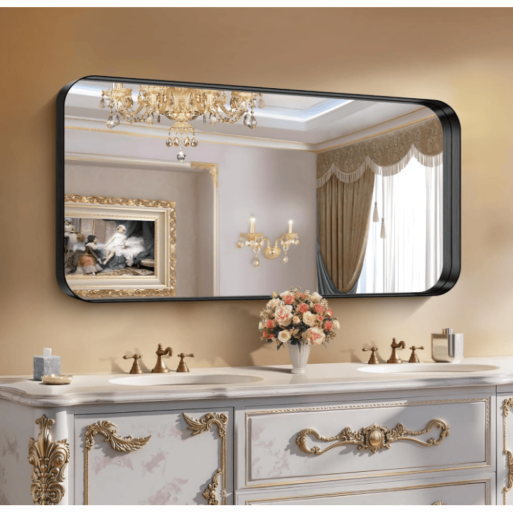 Specchio da Bagno Rettangolare da Parete con Vetro Temperato Antiappannamento e Antigraffio, Angoli Arrotondati per Camere da Letto