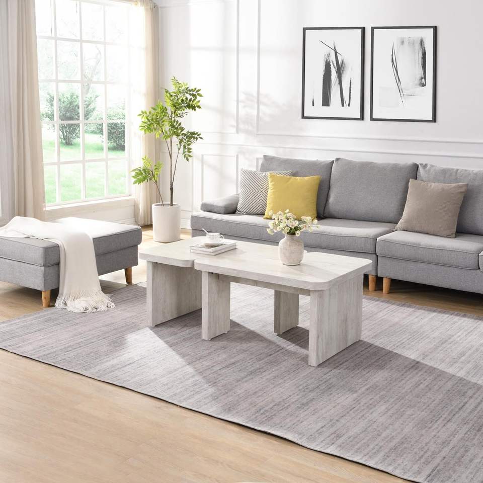 Tavolo da Caffè Rettangolare a L Staccabile Stile Rustico, Tavolo da Pranzo Singolo in Legno 47.24*23.62 Pollici e 35.43*31.49 Pollici, Stile Moderno