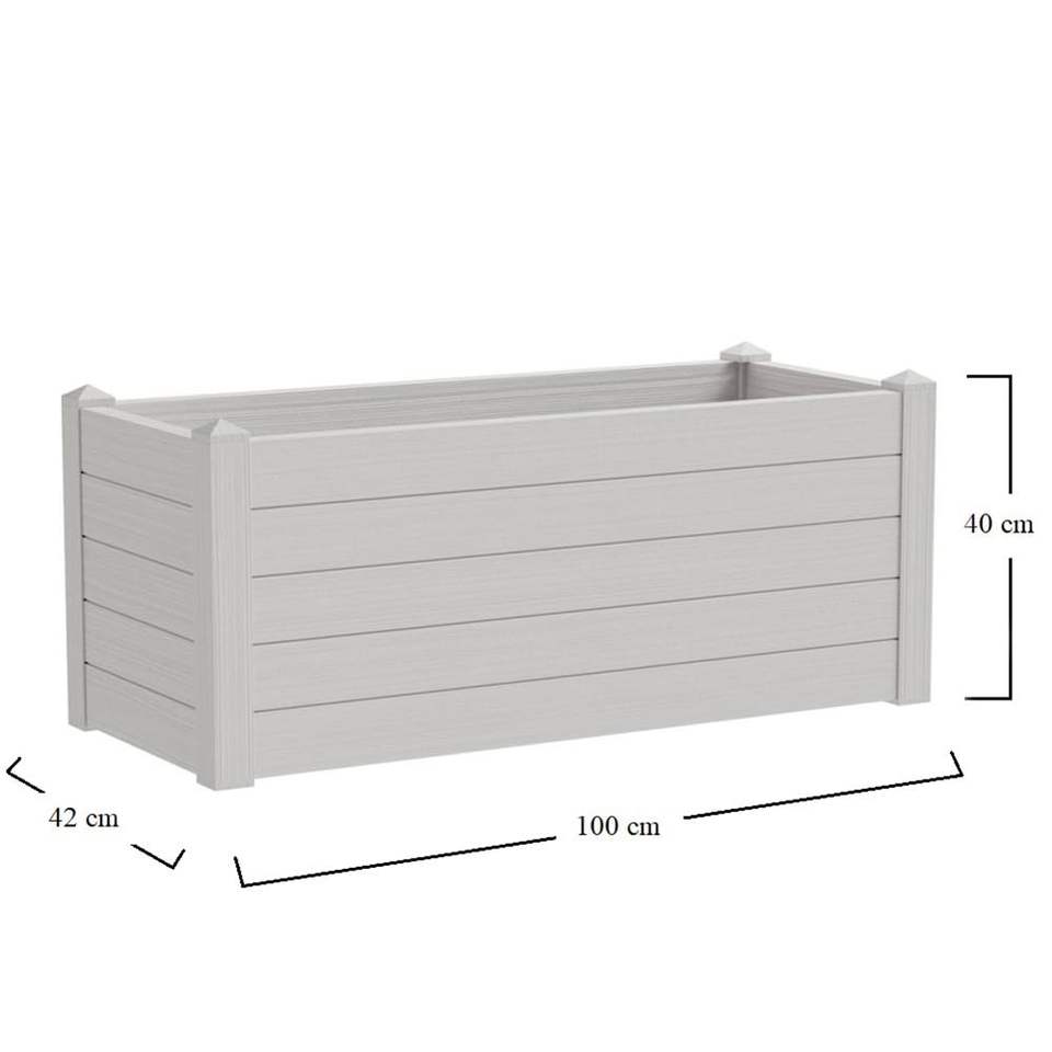 Rectangular Outdoor 100L Plant Pot 100x42x40cm Resin White/Grey with Adjustable Feet Flower Pots & Planters