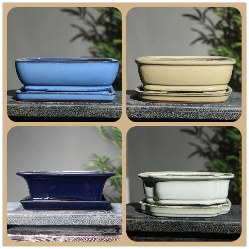 Vasi di fiori rettangolari ovali smaltati in argilla viola classici vasi Bonsai in ceramica vassoi/Base per Bonsai da tavolo/giardinaggio contenitore