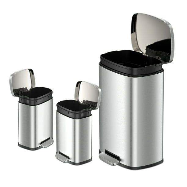Bidone della spazzatura rettangolare in acciaio inossidabile 3 pezzi combinato 13.2 gal due 1.3 per la conservazione della cucina
