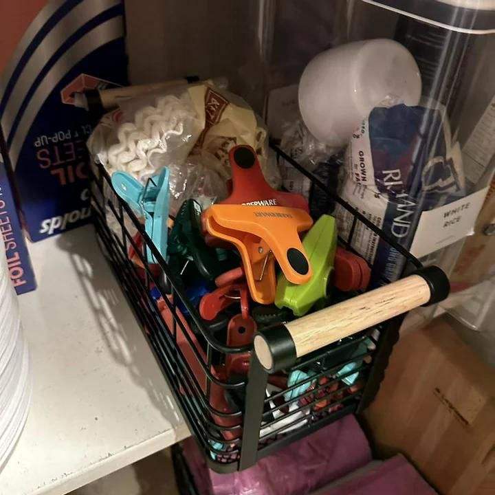 Cestino Rettangolare in Filo Metallico con Manici in Legno Naturale Colore Nero