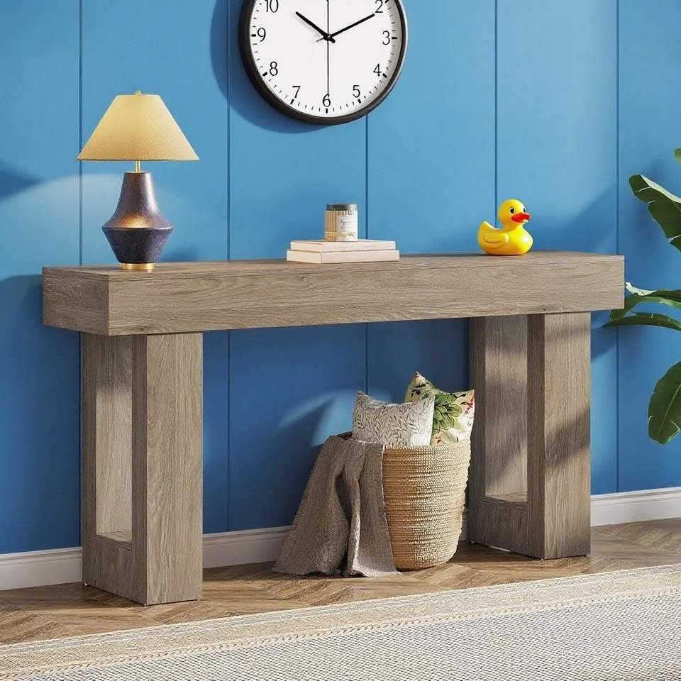 Tavolo Console Rettangolare in Legno, Lungo Tavolo da Divano per Posizionare Dietro il Divano