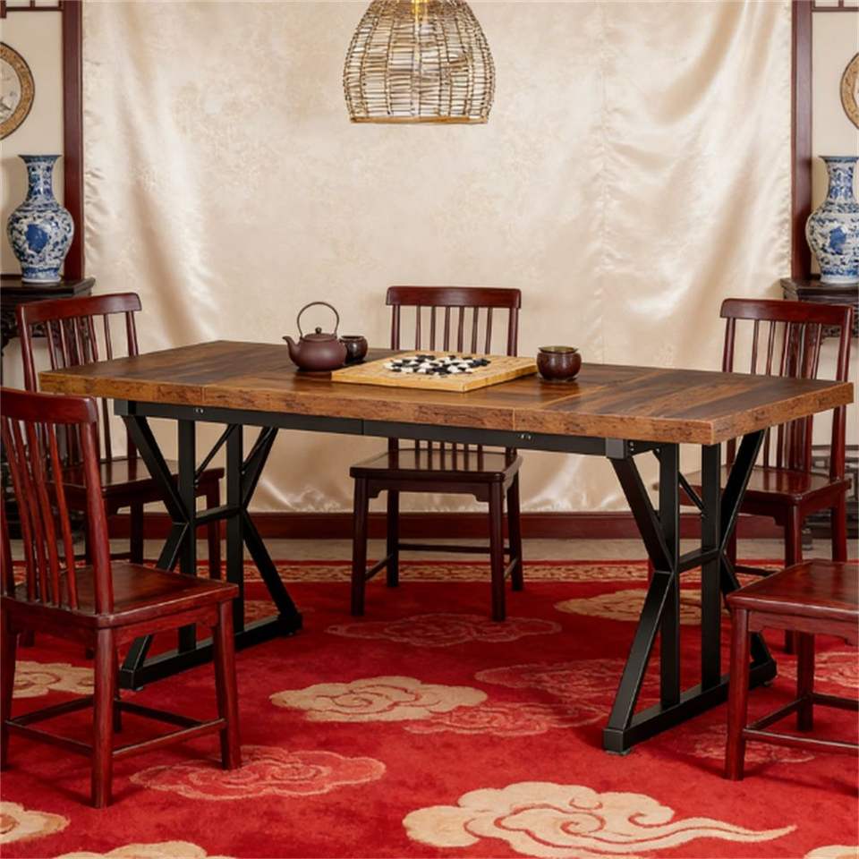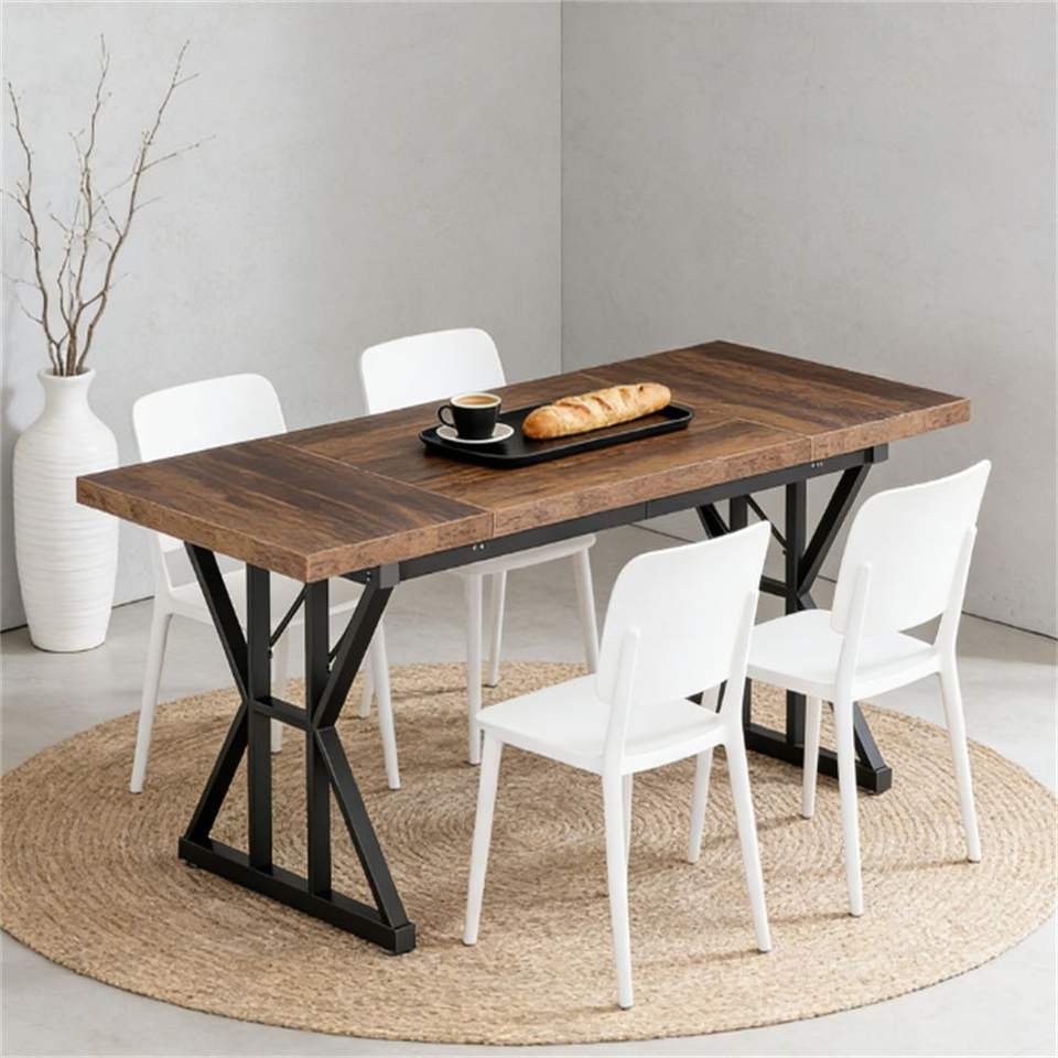 Tavolo da Pranzo Rettangolare in Legno con Gambe in Metallo per Cucina e Soggiorno