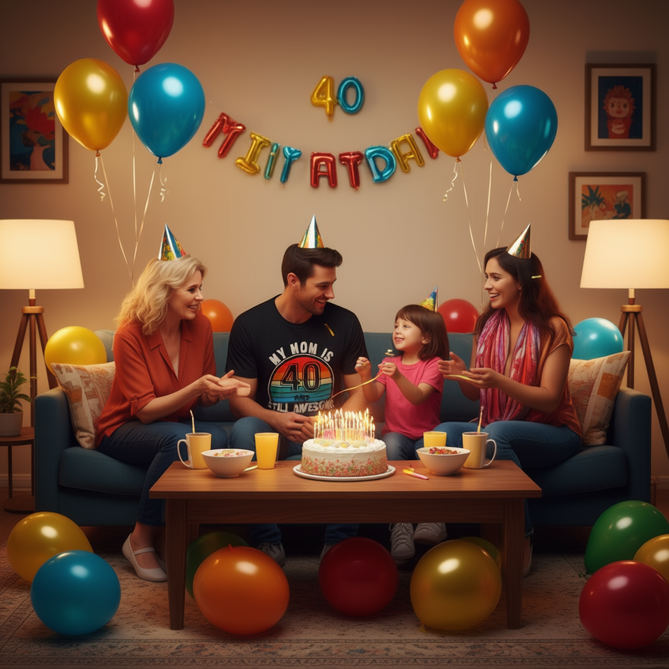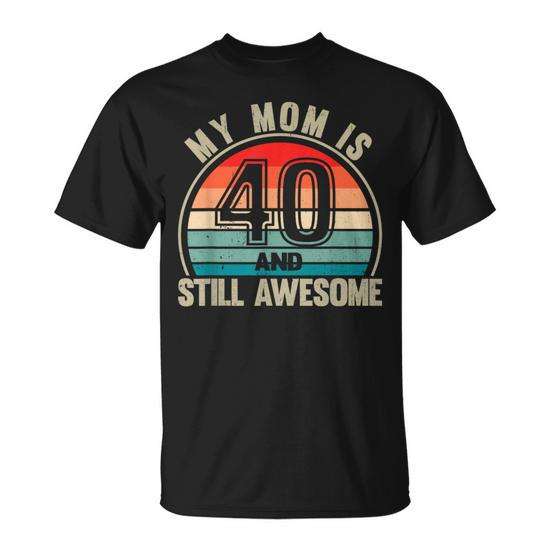 T-shirt promozionale per la mamma con scritta 'Recto Mom Is 40 and Still Awesome' per il 40° compleanno