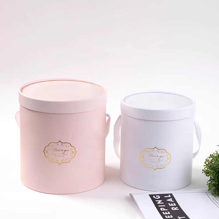 Scatola per Fiori a Cilindro Rotonda Popolare Personalizzata e Riciclabile in Cartone Bianco Puro e Rosa Tipo Hug Bucket per Confezionamento di Bouquet Regali e Gioielli