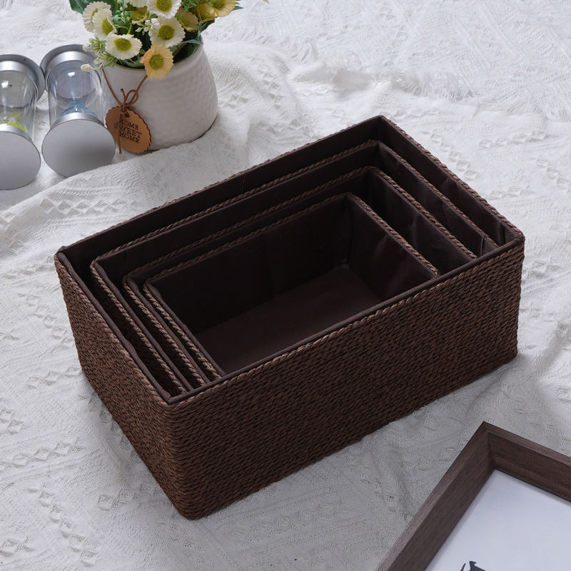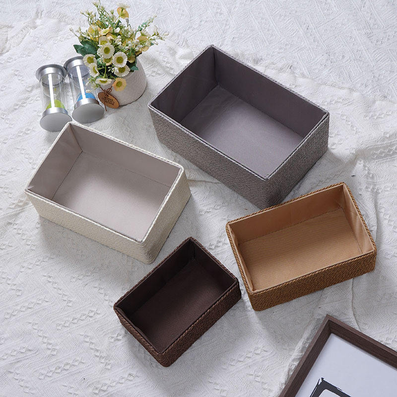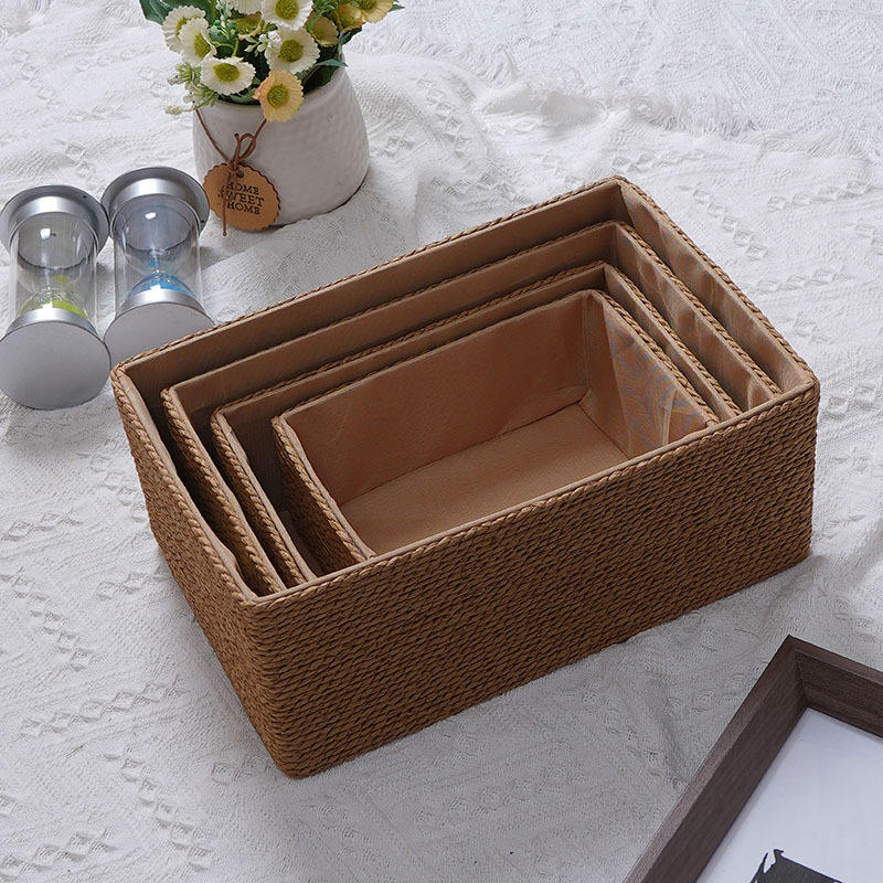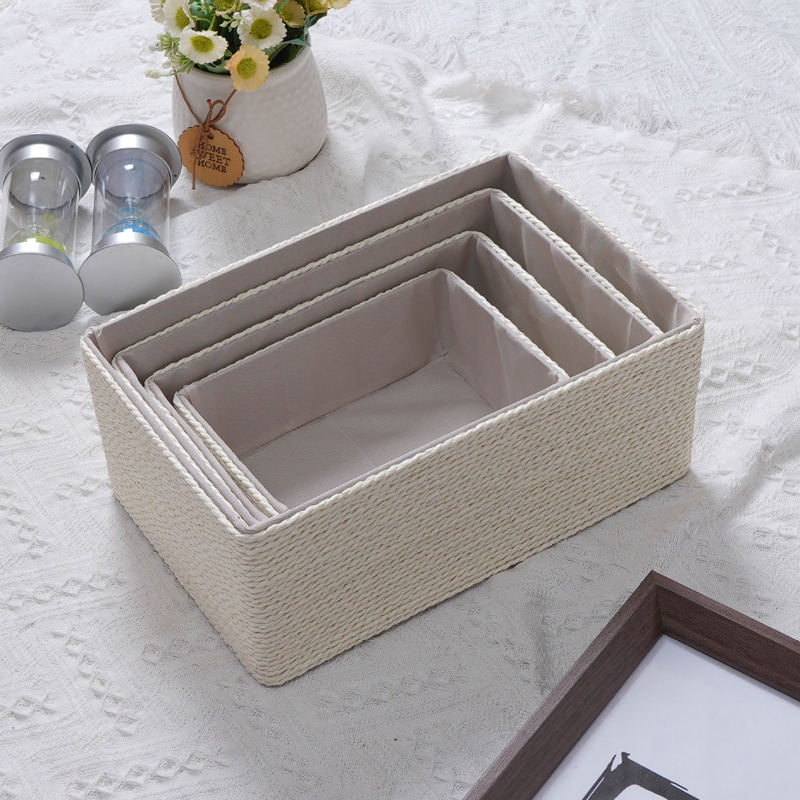 Cestino Portaoggetti in Vimini Riciclato, Contenitori in Corda di Carta per Organizzare Scaffali, Armadi e Cassetti