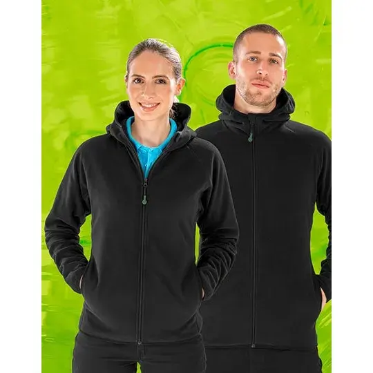 Recycled microfleece hooded jacket sustainable merchandising