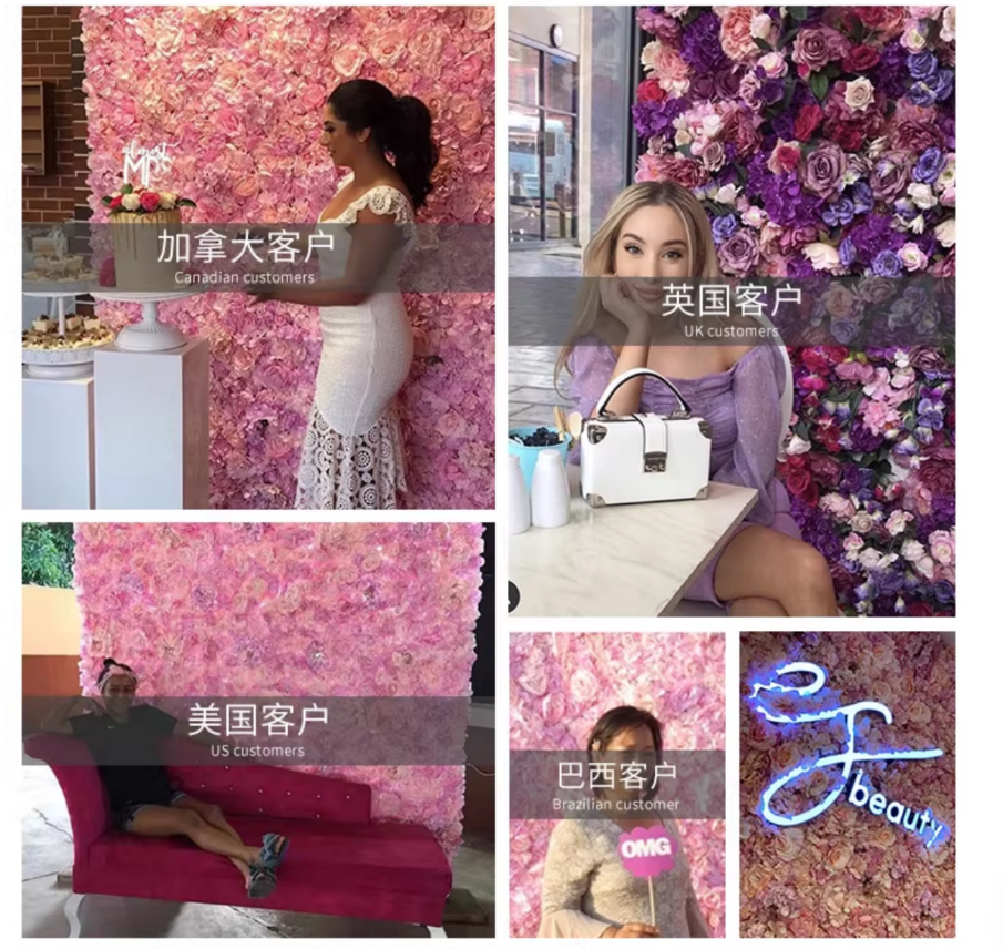 Sfondo 3D con Rose Artificiali Rosse, Tenda Avvolgibile in Tessuto 8 X, Parete di Fiori Rosa Pallido