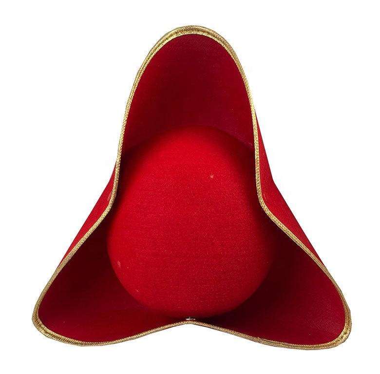 Cappello Rosso da Capitano Hook con Bordo Dorato, Classico Cappello da Pirata Tricorno Rosso