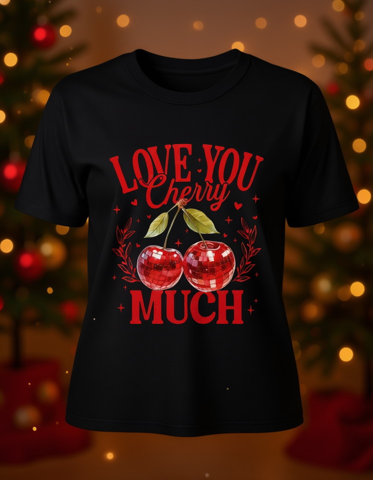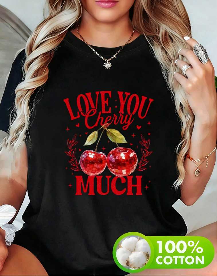 Red Cherry Print T-Shirt Unisex Short Sleeve Crew Neck Soft Cotton Comfortable Fit Machine Washable All Seasons