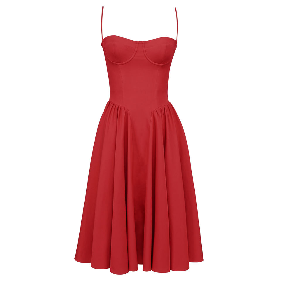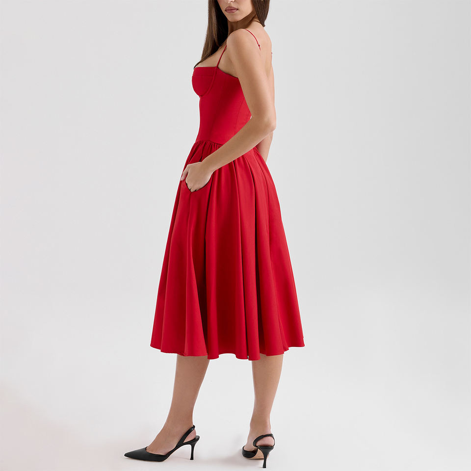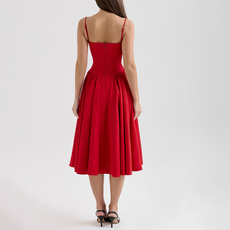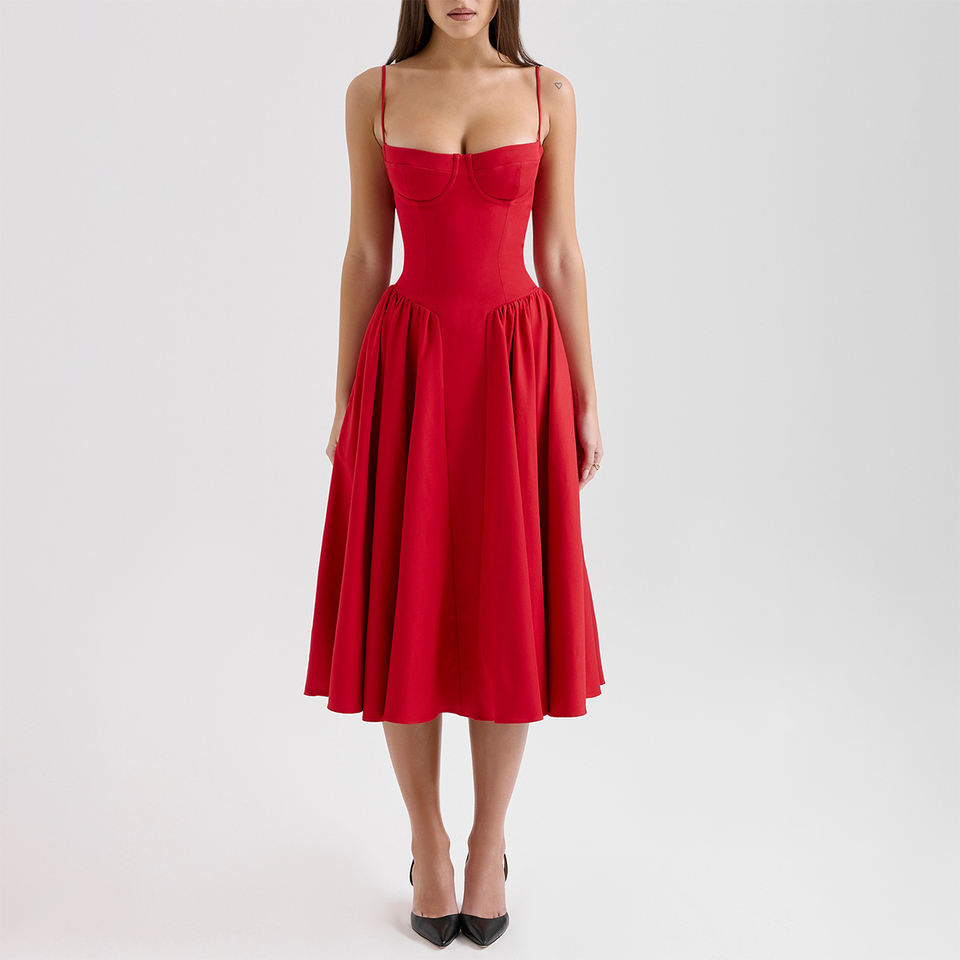 Abito Midi rosso raccolto per donna elegante elegante abito da Cocktail alla moda donna abbigliamento personalizzato fabbrica