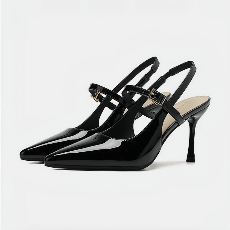 Décolleté Rosse con Tacco Alto da Donna a Punta Sexy alla Francese Scavate sul Retro Sandali Borgogna a Punta Chiusa da Damigella con Tacco a Spillo