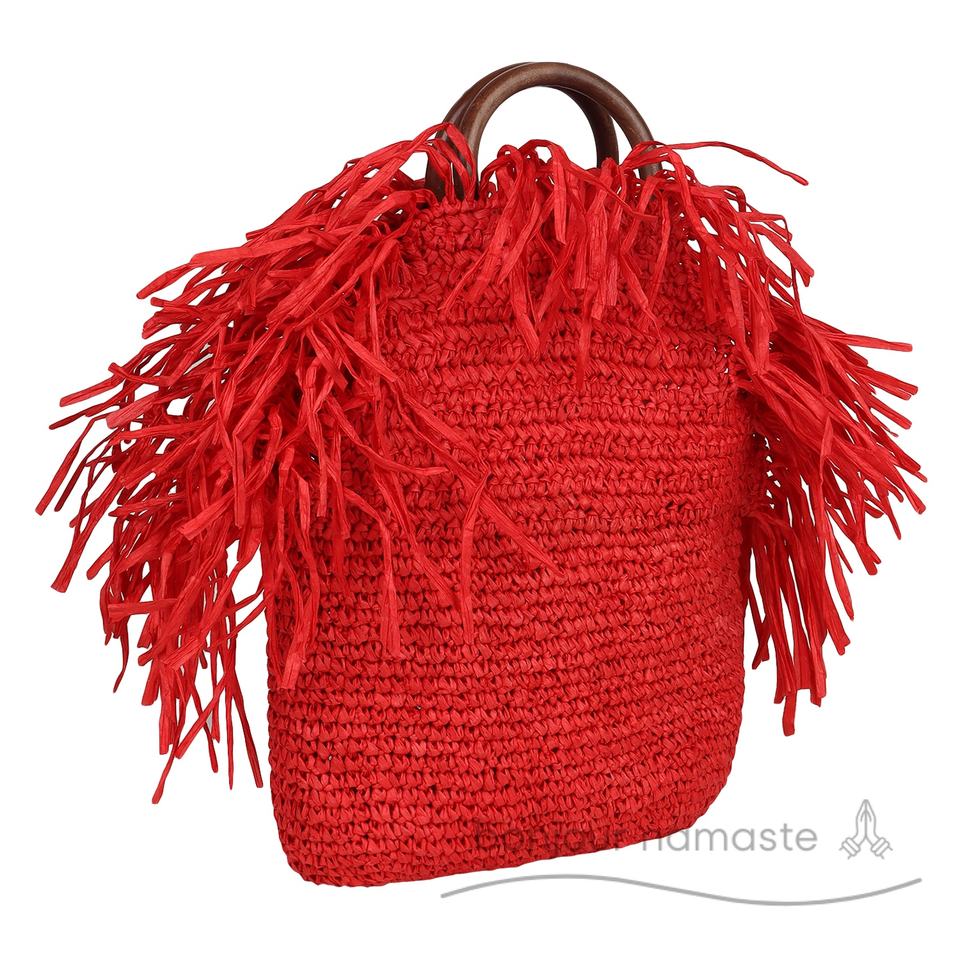Red Hot Handmade Raffia Ladies Tote Bag | Eco-Friendly Artisan Crafted Bohemian Fashion Scandinavian German Market Collection