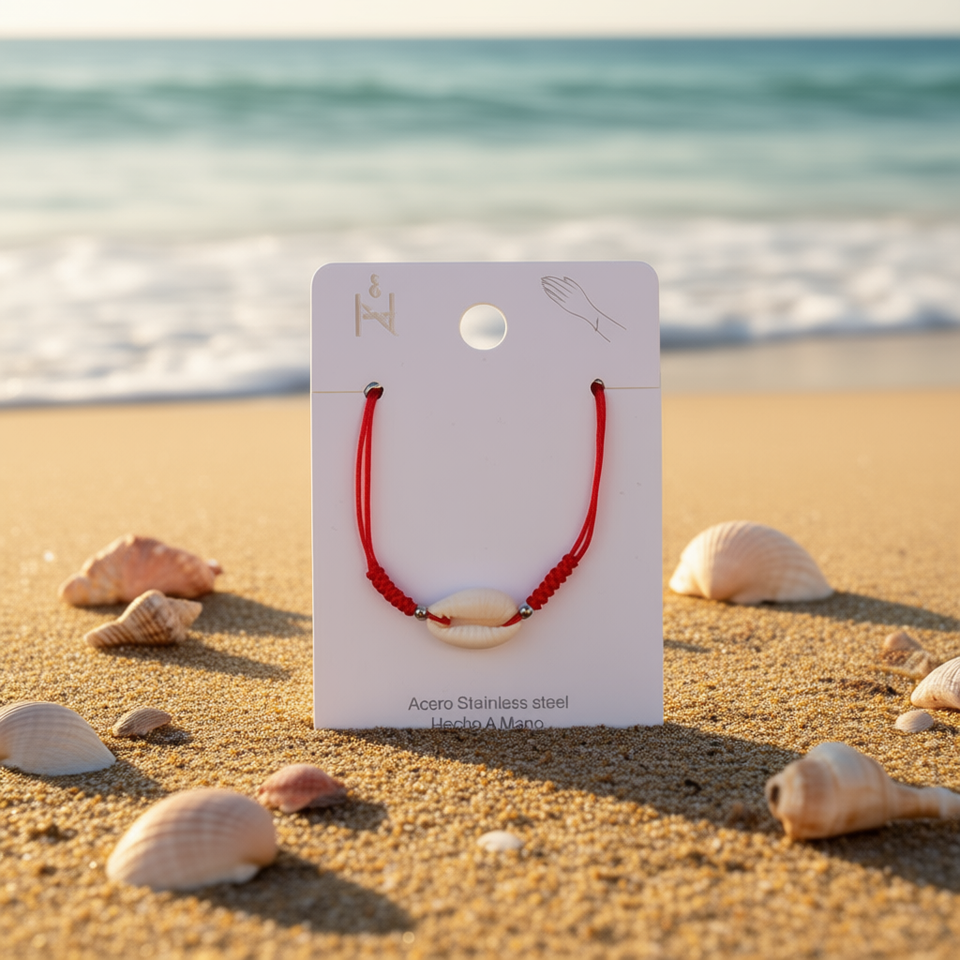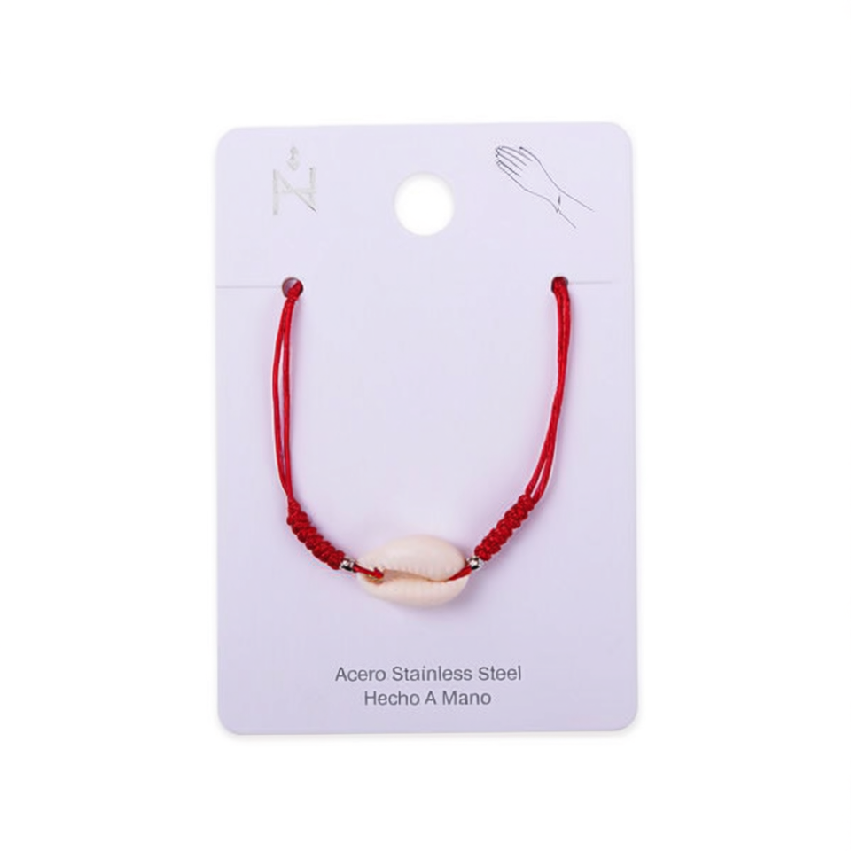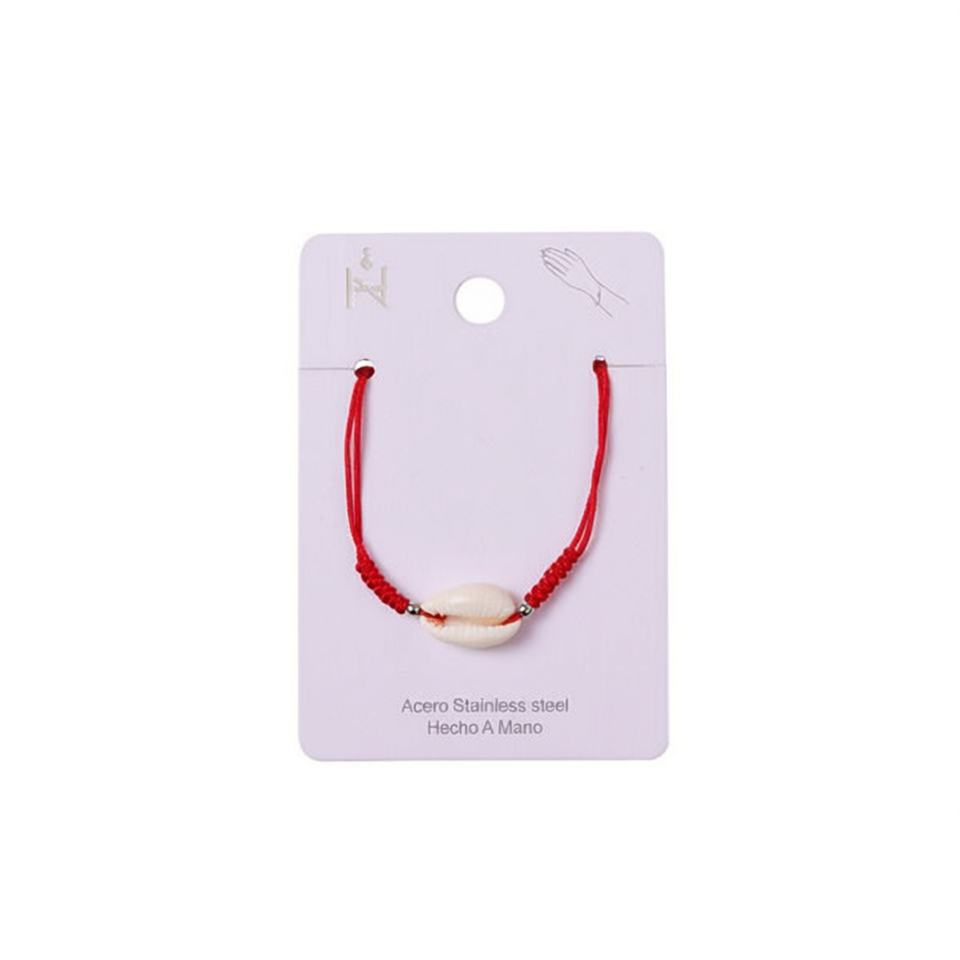 Braccialetto Angelina con Nodo Portafortuna Rosso e Conchiglia, Charm in Acciaio Inossidabile, Stile Bohémien Unisex, Regalo