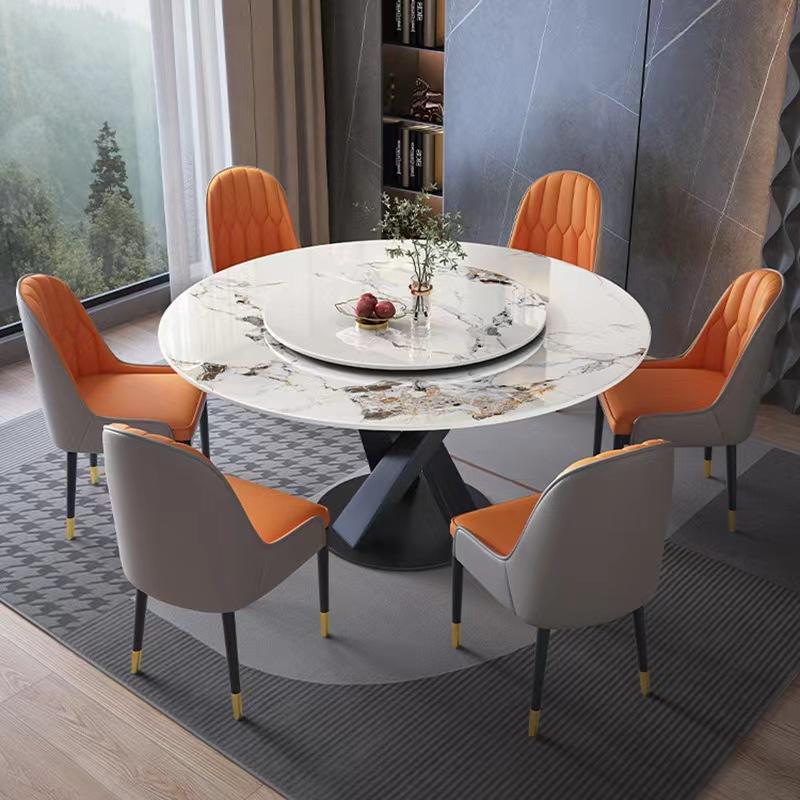 Cucina di lusso rossa rotonda estendere sala da pranzo tavolo e sedia Set, tavolo da pranzo e sedia Set per la sala da pranzo 6