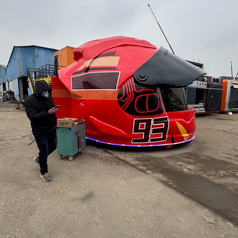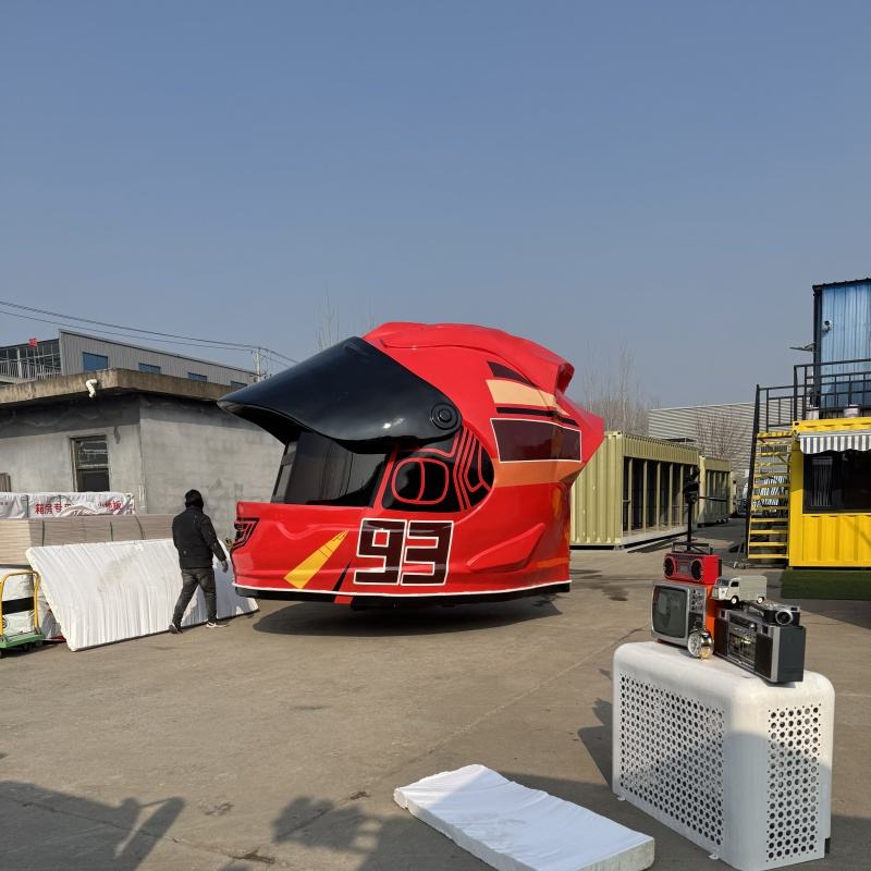 Chiosco Mobile per Caffè a Forma di Casco da Moto Rosso - Rimorchio in Vetroresina per Catering, Ideale per Eventi Sportivi