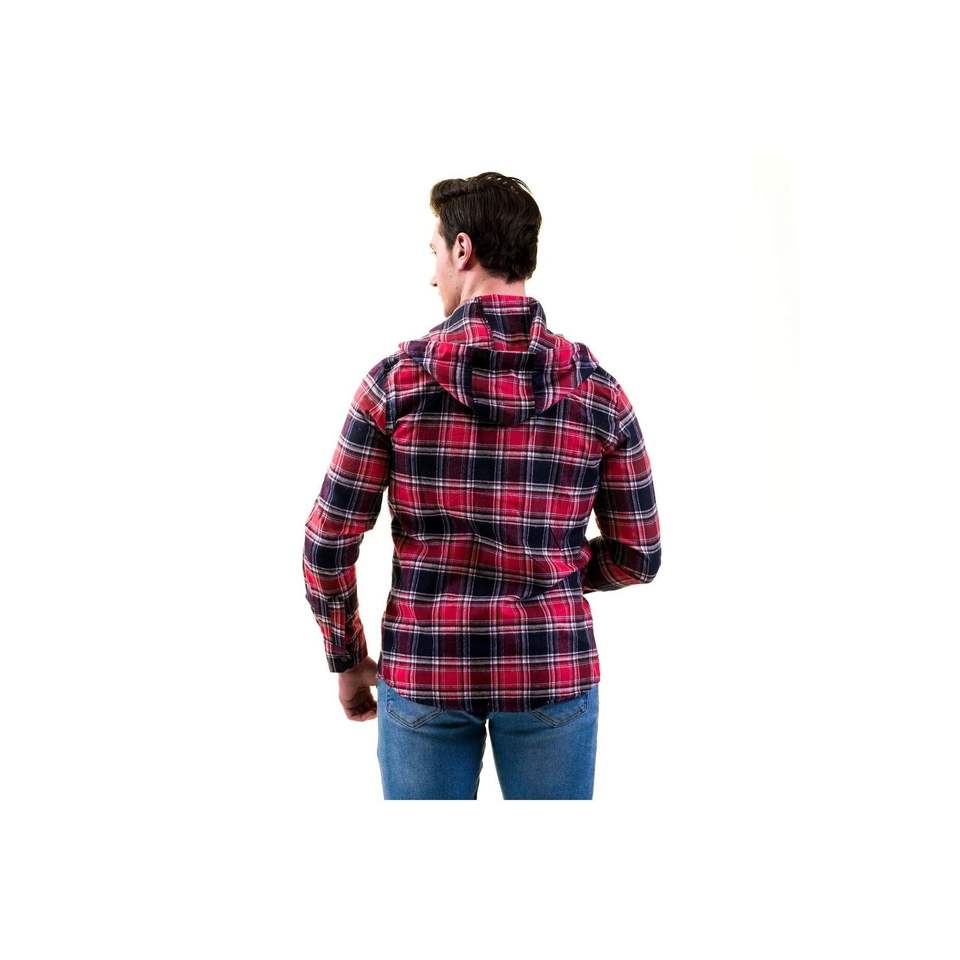 Camicia Western con cappuccio da boscaiolo in lana a quadri a quadri rosso Navy