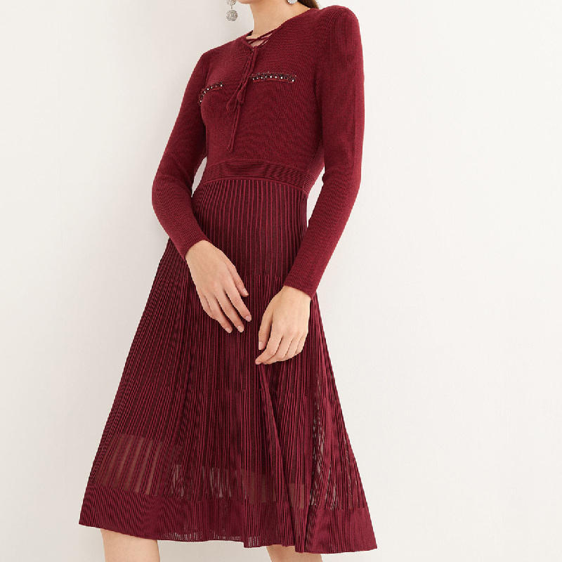 Abito plissettato rosso maglione lavorato a maglia 2022 abiti Casual Sexy da donna stilista