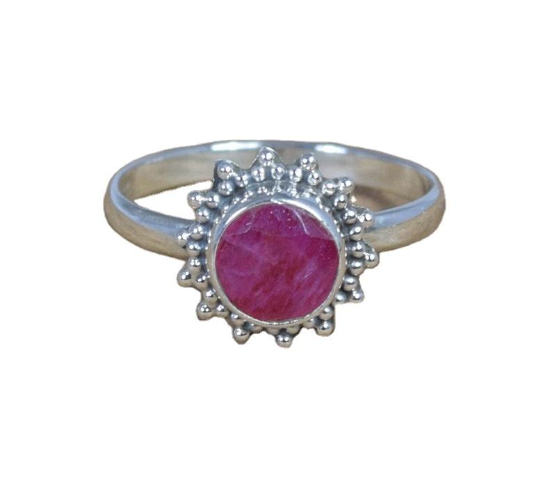 Anello Eternity Trendy con Rubino Rosso in Argento Sterling 925 Placcato Oro Rosa, Montatura a Griffe, Design Floreale, Moissanite, Regalo per Lei