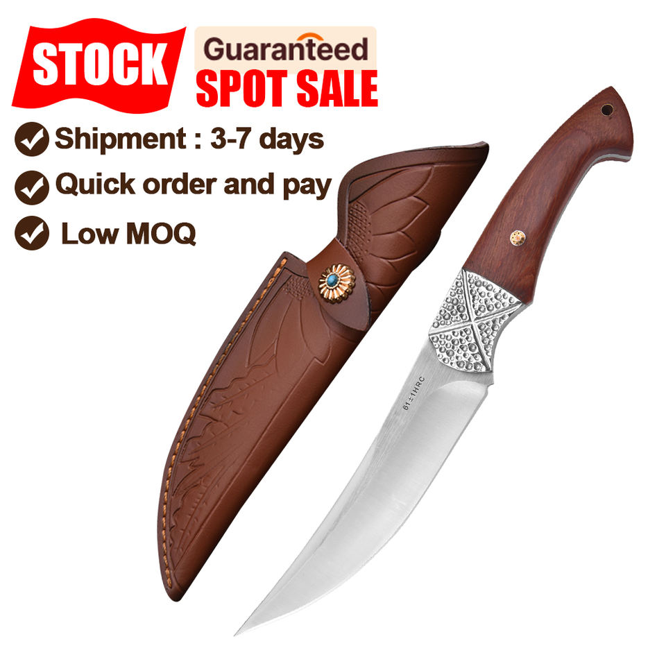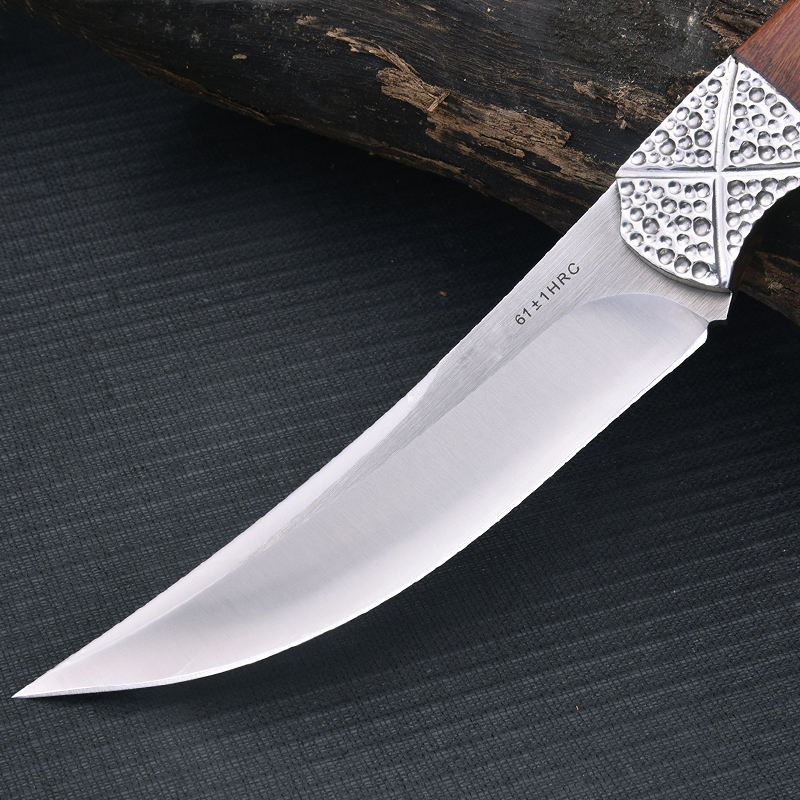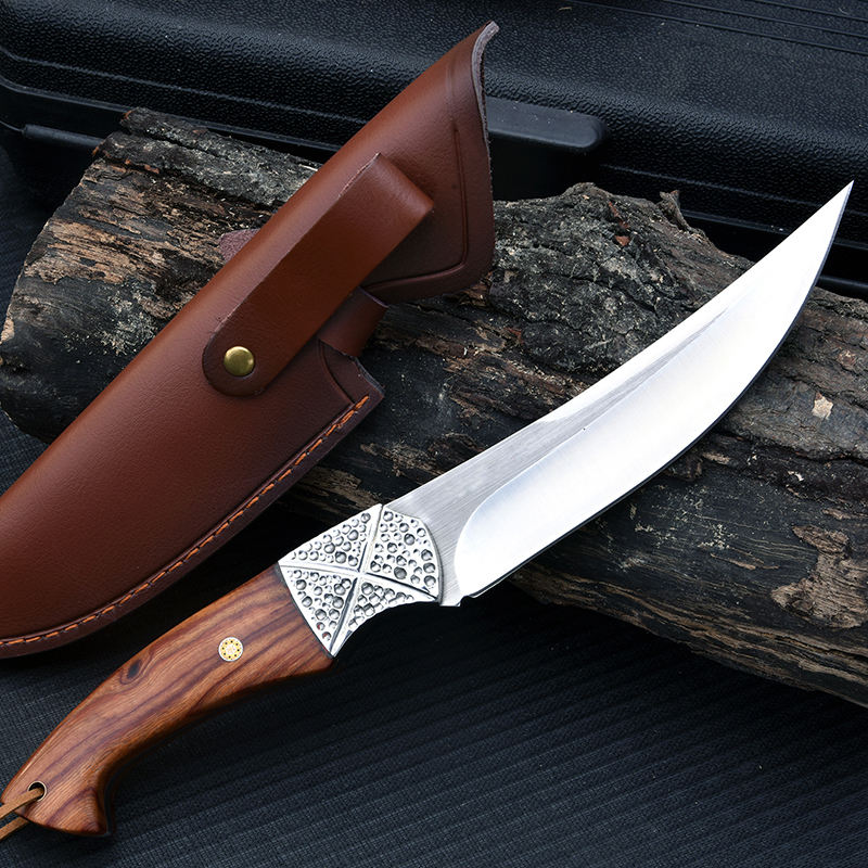 Red Sandalwood Handle 5cr13 Steel Blade Tactical Bushcraft Benchmade Knife for Self Defense with Leather Knife Sheath