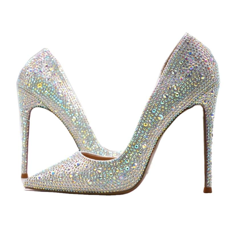 Décolleté con tacco a cristalli rossi/argento 12/10/8/6cm Stiletto a punta da donna tacchi da donna tacco alto abito da sposa scarpe